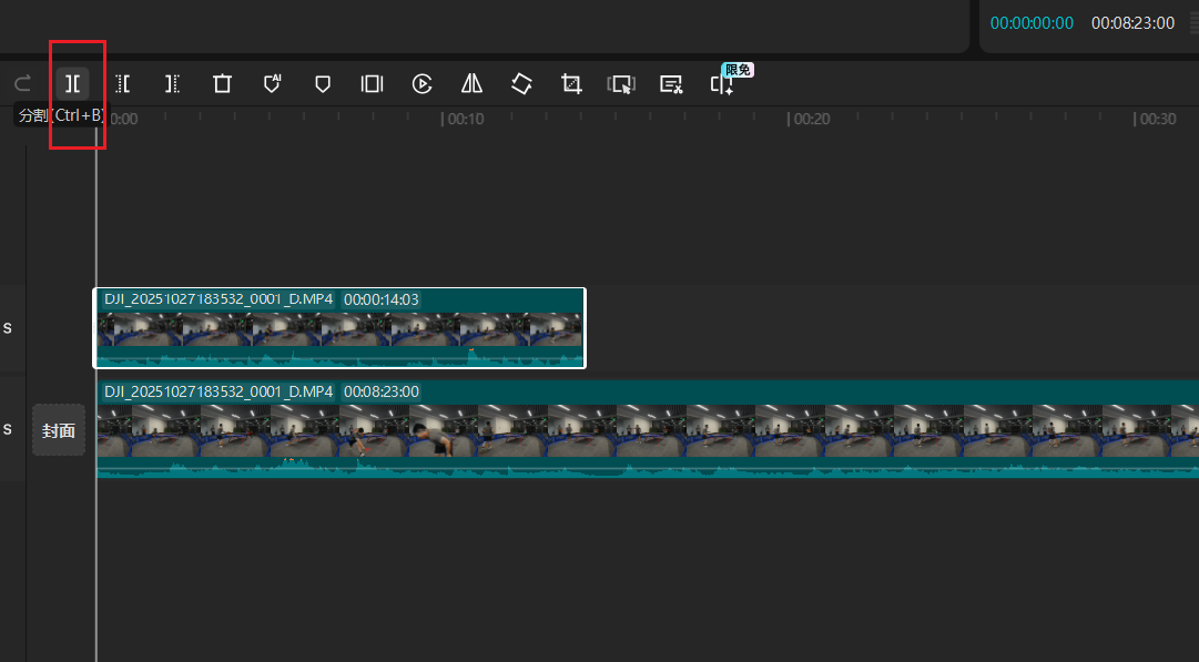 在素材栏中点选视频,底部会出现**“裁剪”两端的滑块**。