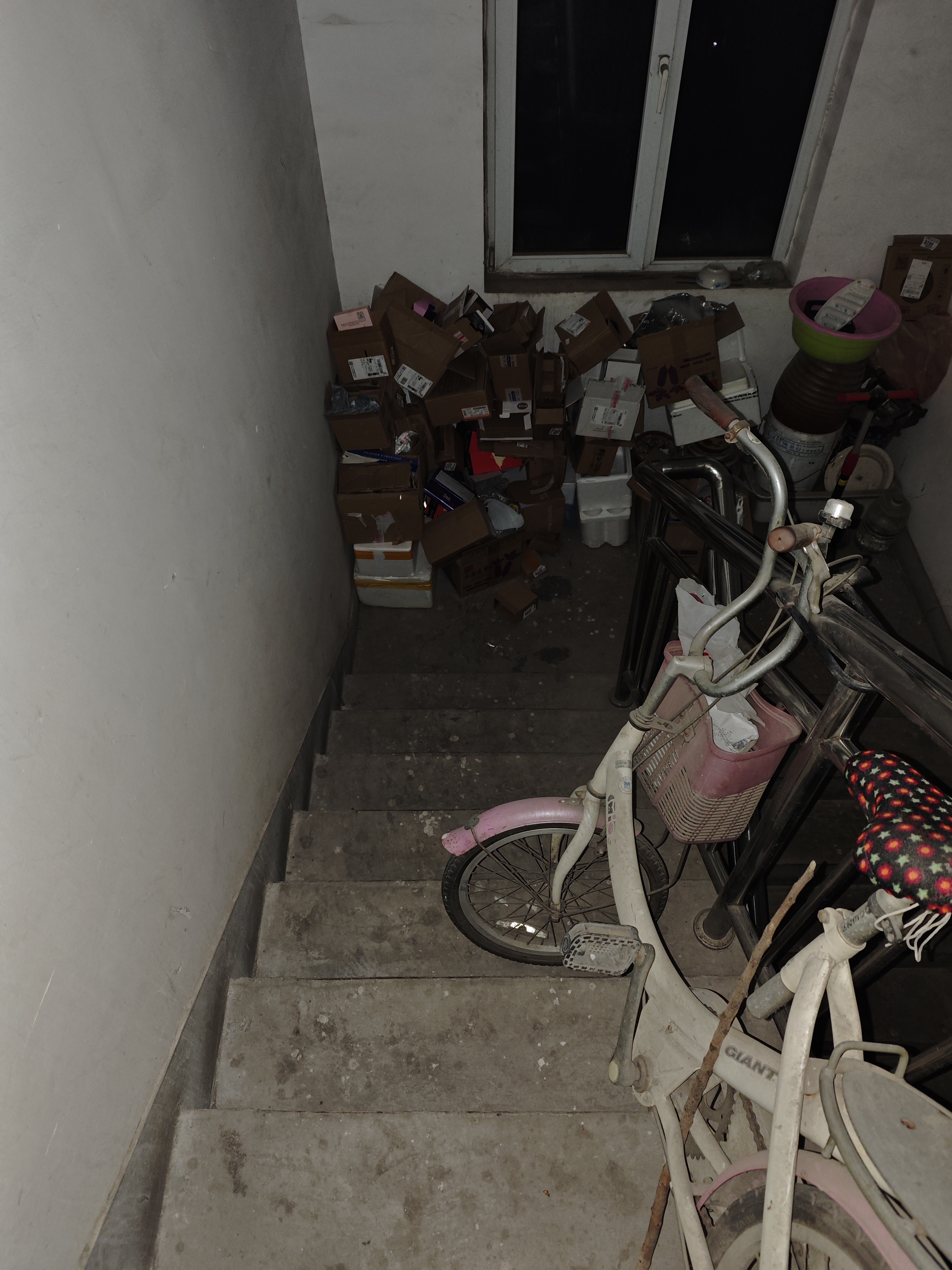 楼道、疏散通道堆放杂物(纸箱、家具等)