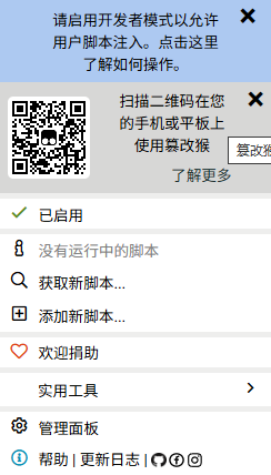 管理扩展程序,打开允许运行用户脚本