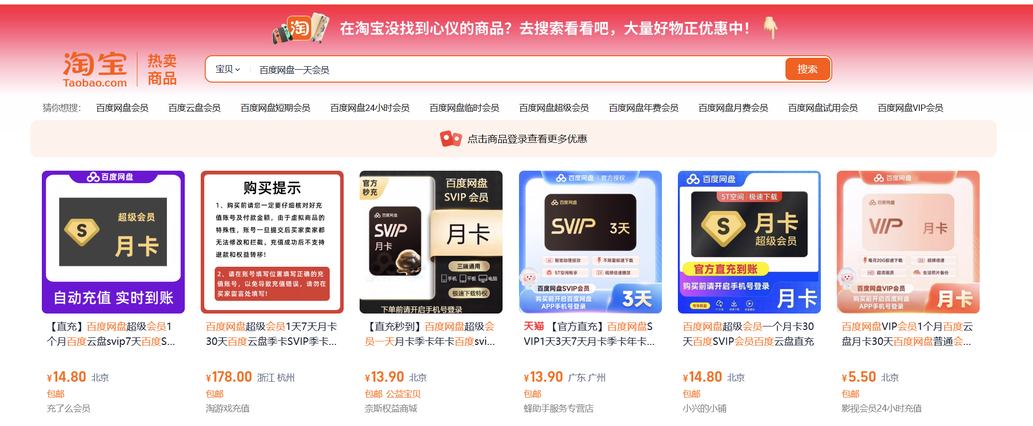 三、如果是临时下载,还可以在淘宝搜索“baidu 一天会员”