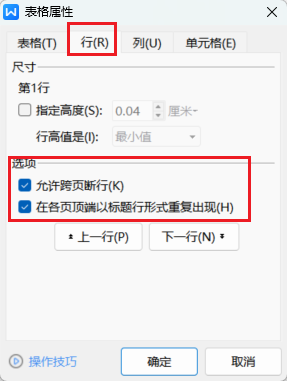 在 WPS Office 文档中,当表格跨页时: