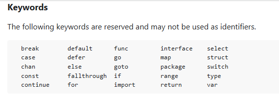 https://go.dev/ref/spec#Keywords