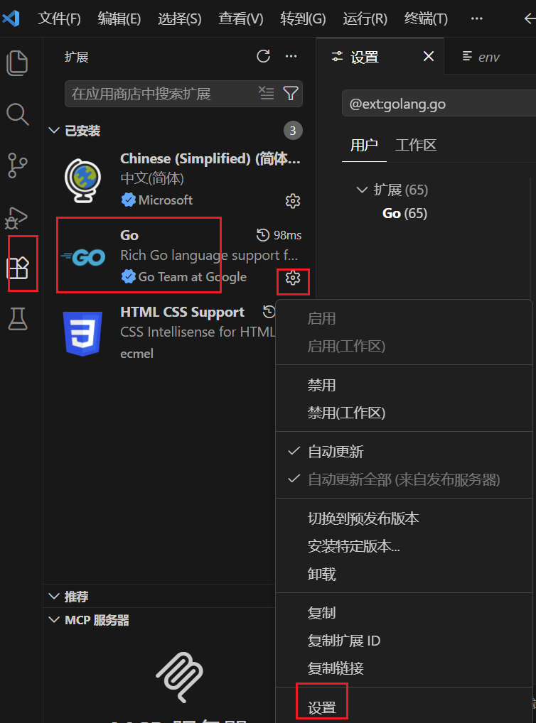 集成开发环境推荐GoLand和VSCode,后者是免费的。VSCode需要额外安装支持Go语言的插件,如下图