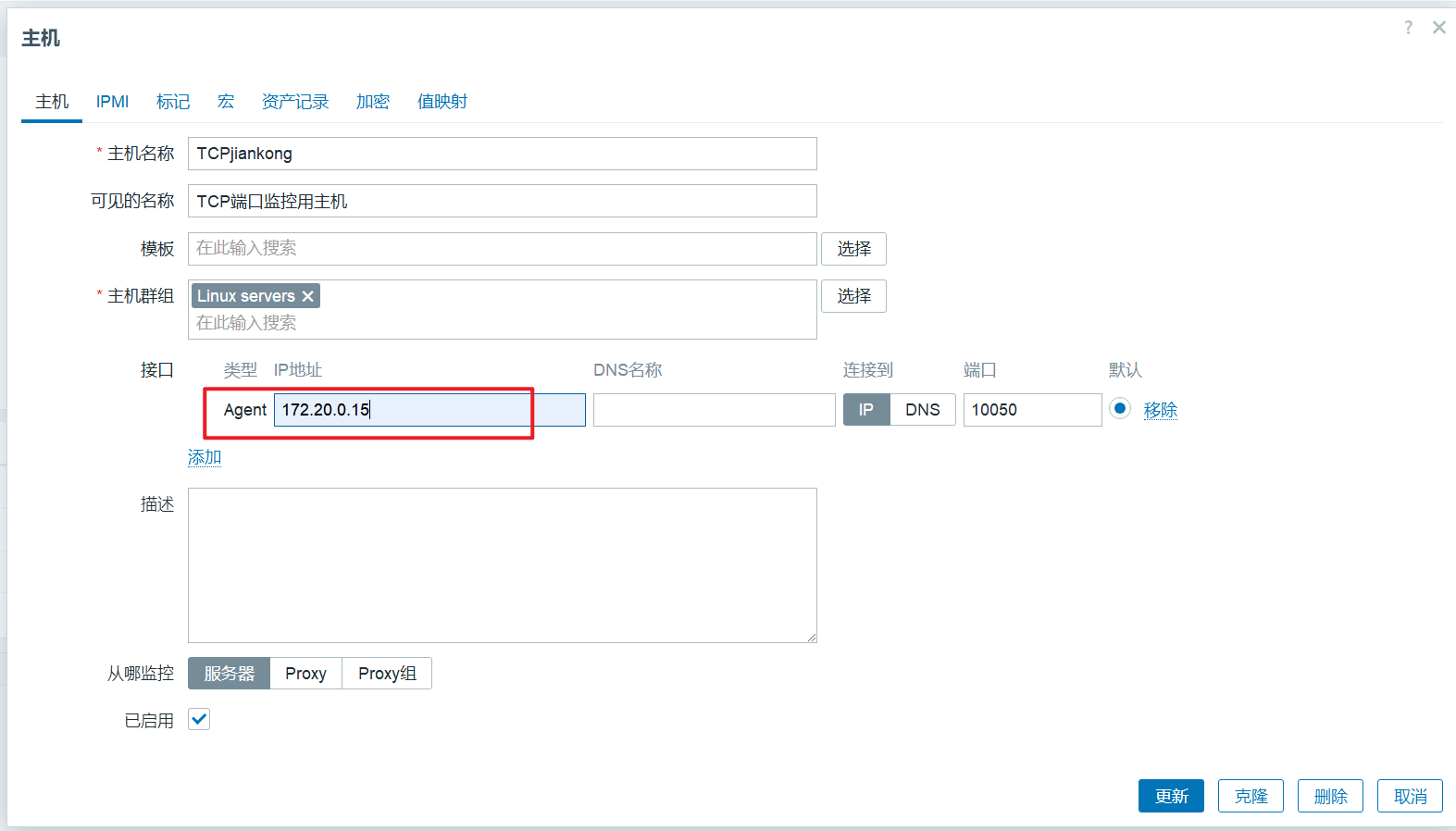 注意主机接口要是实际地址,不能是bridge地址,因此本机其的agent监控NTP服务是不可用的,其他主机用宿主机地址是可以的。