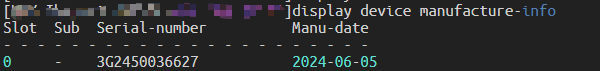 背景:当统计网络设备交换机台时,经常需要用到序列号,因此需要学会查询交换机的序列号并录入台账命令:display device manufacture-infodisplay elabel | include BarCode实际案例: