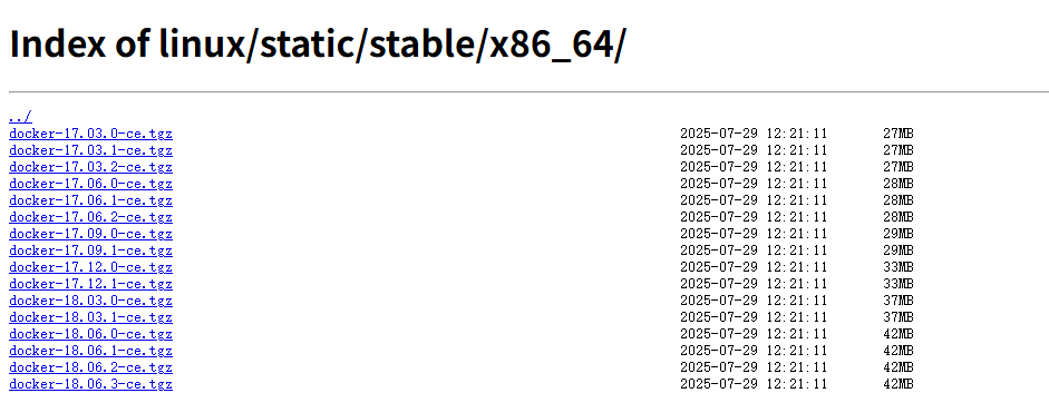 wget https://download.docker.com/linux/static/stable/aarch64/docker-20.10.24.tgz(ARM 架构请换 aarch64)