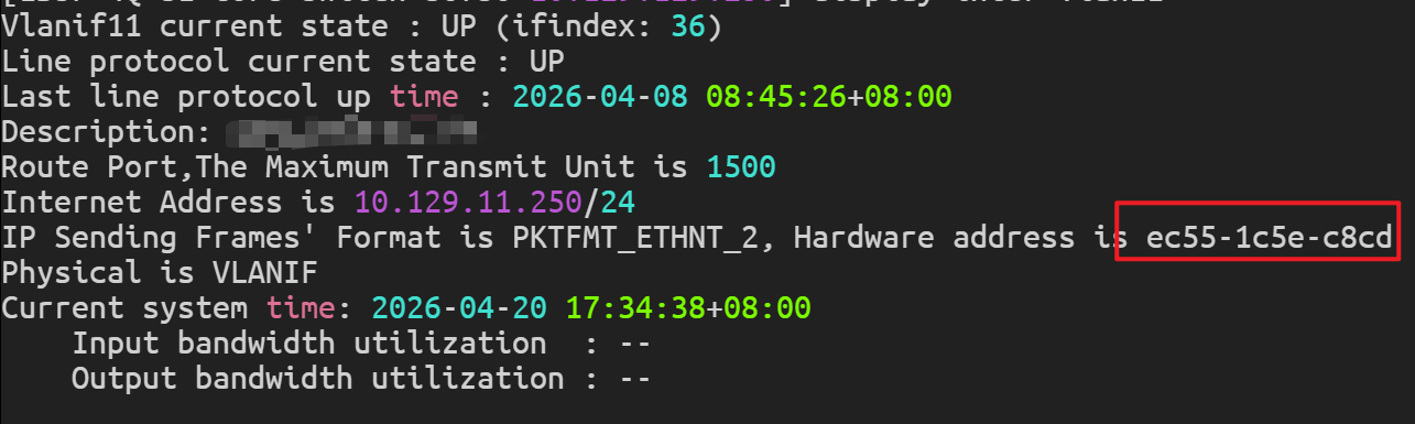 必须使用稳定且独立的 MAC,可以发现不同物理接口mac是一样的,都等于bridge,但是每个vlanif网关的mac是不一样的。