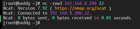 ssh -p 端口 目标IP -o ConnectTimeout=3 "exit"• 通过尝试建立SSH连接并立即退出验证端口。