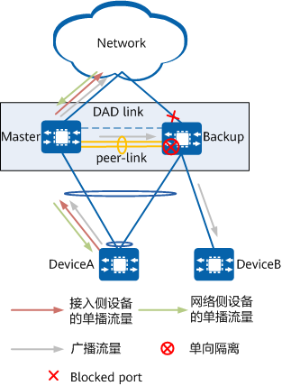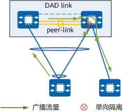 M-LAG防环机制中的单向隔离对二层(包括单播、组播、广播)流量生效,三层组播流量生效,三层单播流量不生效。
