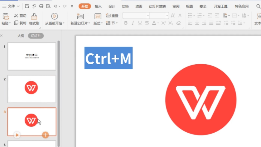 例如,当我们使用Ctrl+M新建幻灯片时,会出现一个空白幻灯片。