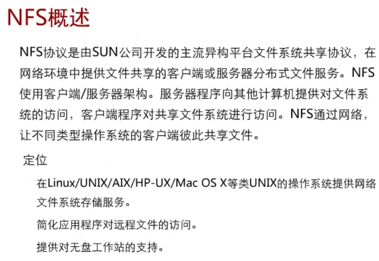 这决定了 NFS 的三个核心特性: