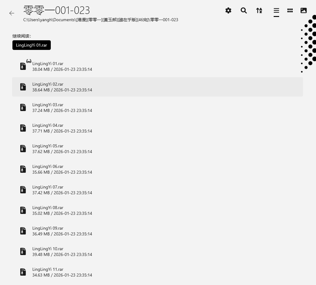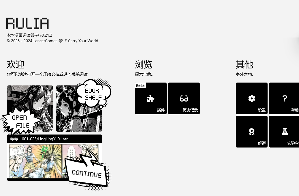 并且继续阅读功能也能基于压缩包,功能及其强大。即使你挪动了原始文件的位置,阅读记录还在!