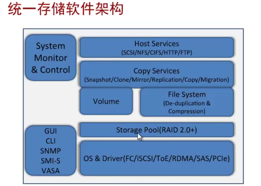 统一存储是一种多协议、多数据模型、统一资源池、统一管理面的存储体系架构。