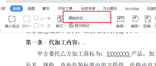 单击接收修订,会显示最终状态,单击拒绝修订会恢复到原始状态。