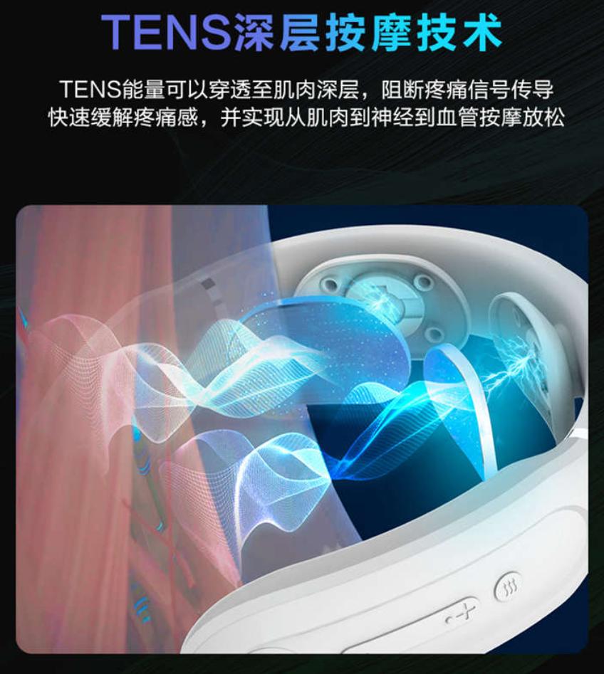 它通过电极片释放微弱电流,刺激颈部皮下的神经和肌肉,让你产生“被按摩”的感觉。