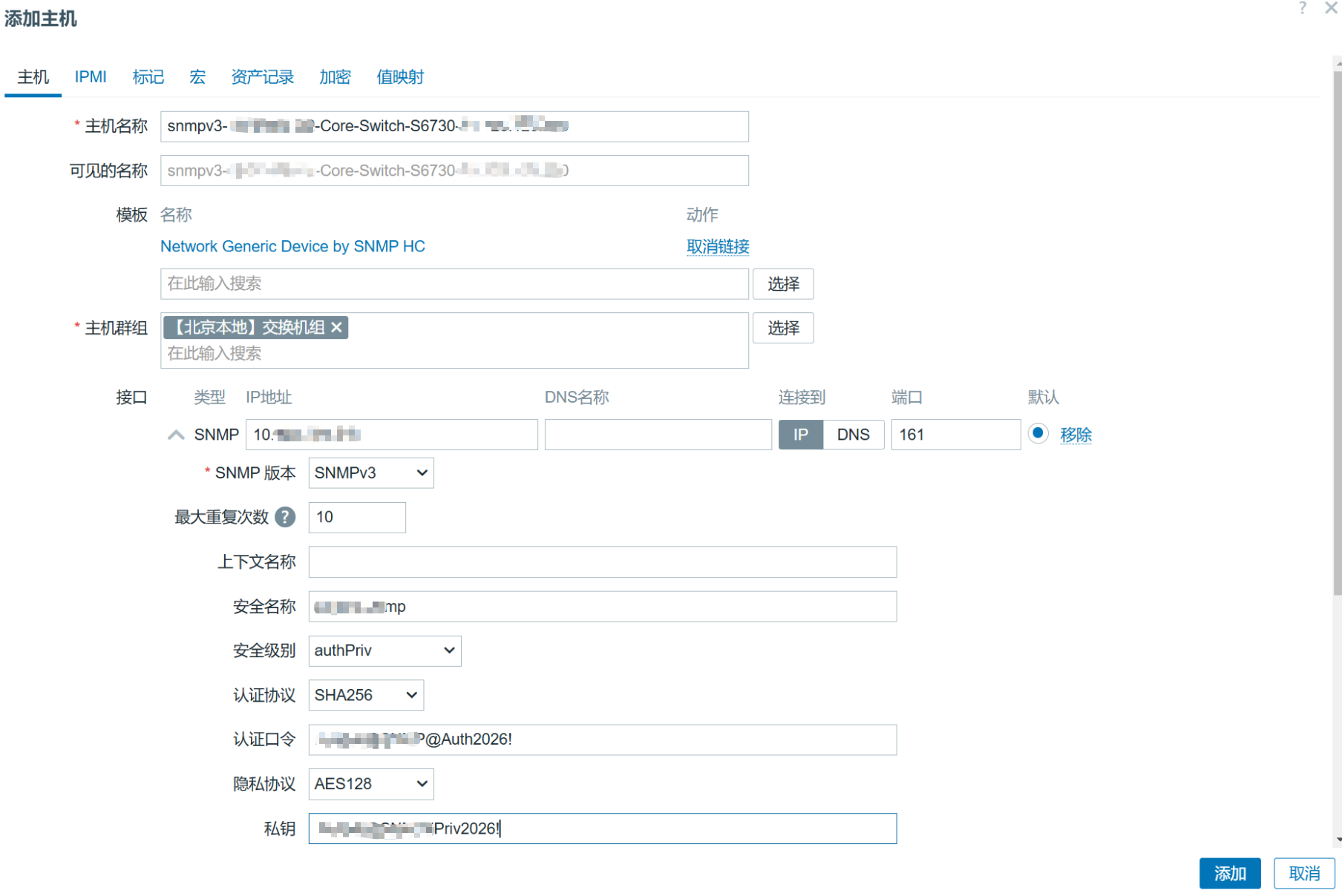 snmp-agent usm-user v3 bxddg-snmp privacy-mode aes128三、zabbix的实战配置