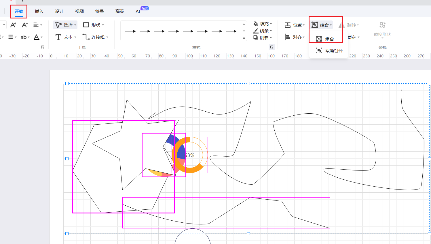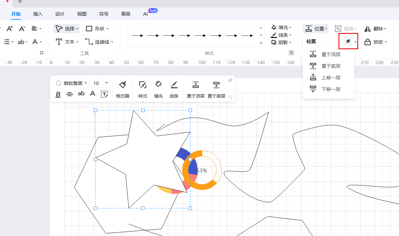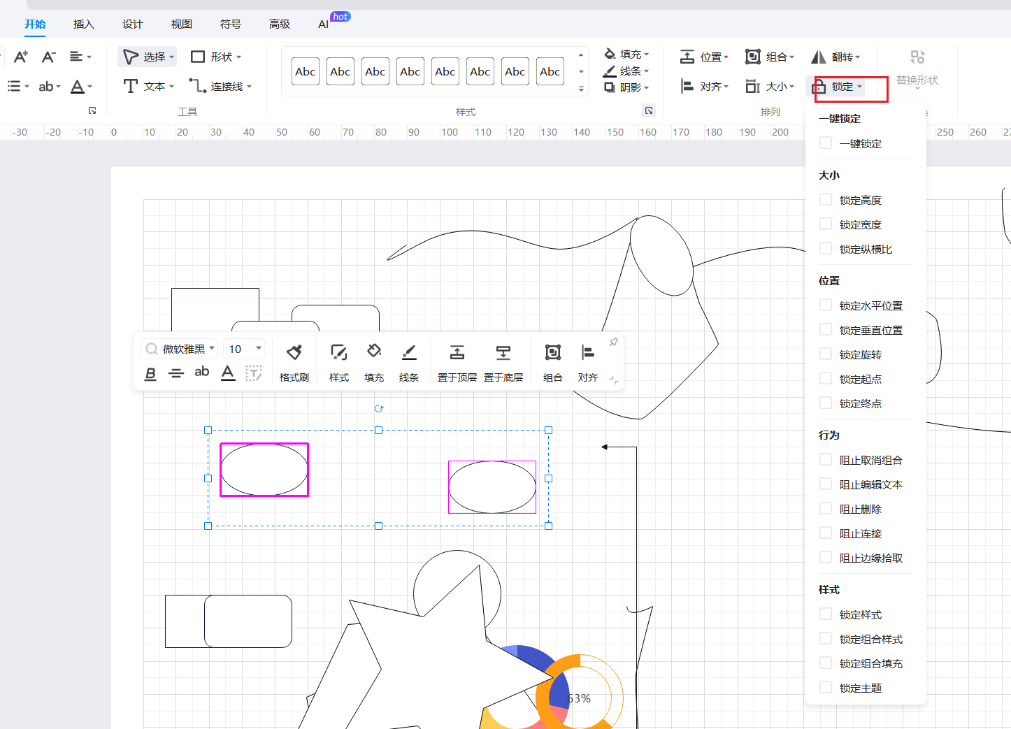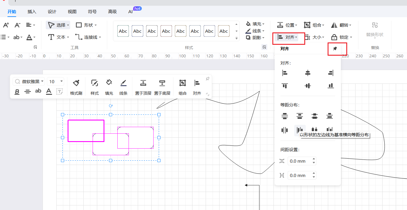 一、位置点击图钉可固定工具也可在浮动工具栏选择也可右键选择二、组合组合后变成一个整体或者Ctrl+G快捷键组合或者ctrl+shift+G解组三、翻转四、对齐点击图钉可固定工具浮动工具栏对齐五、大小六、锁定和解锁
