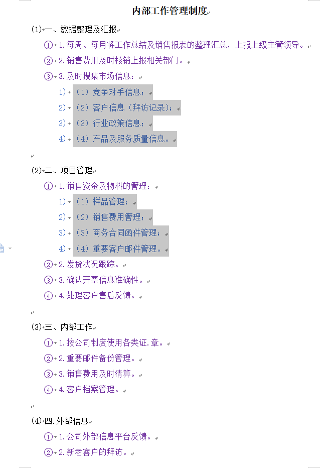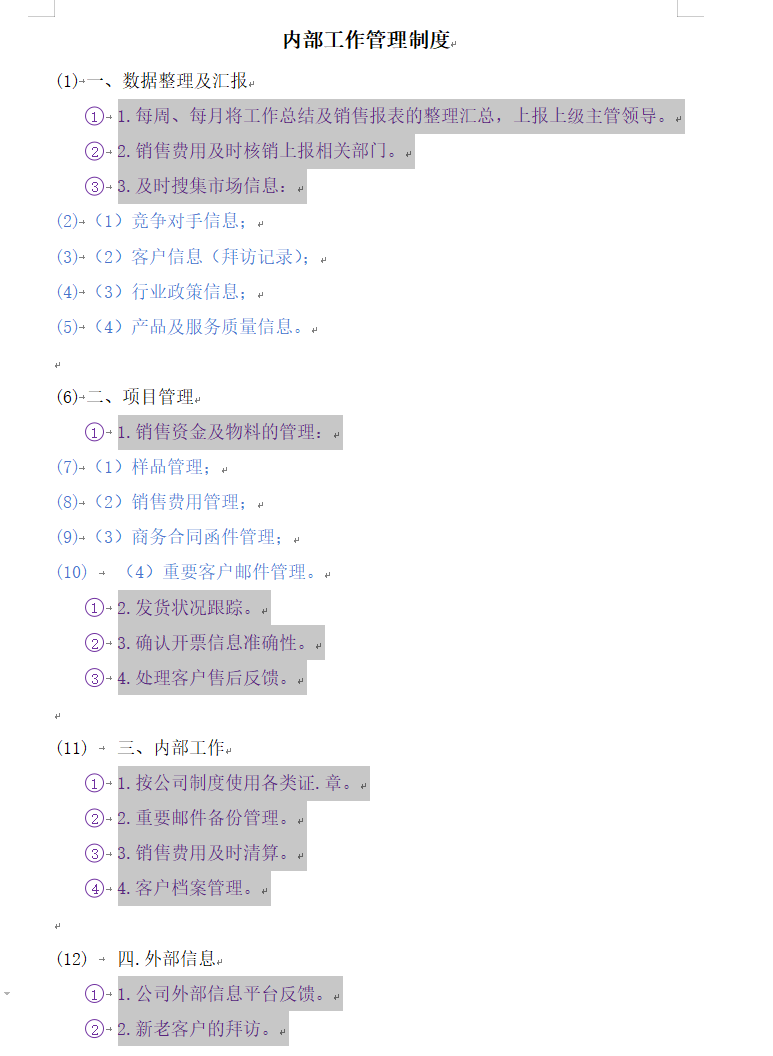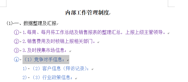 然后对上面黑色字体进行一级编号,紫色字体进行二级编号,蓝色字体进行三级编号