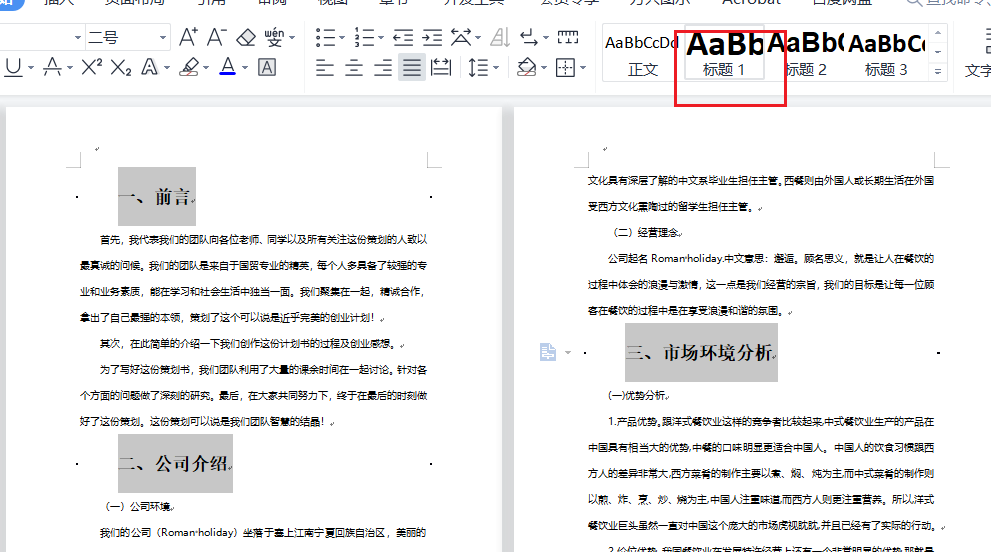 然后单击标题一,预设样式如下所示