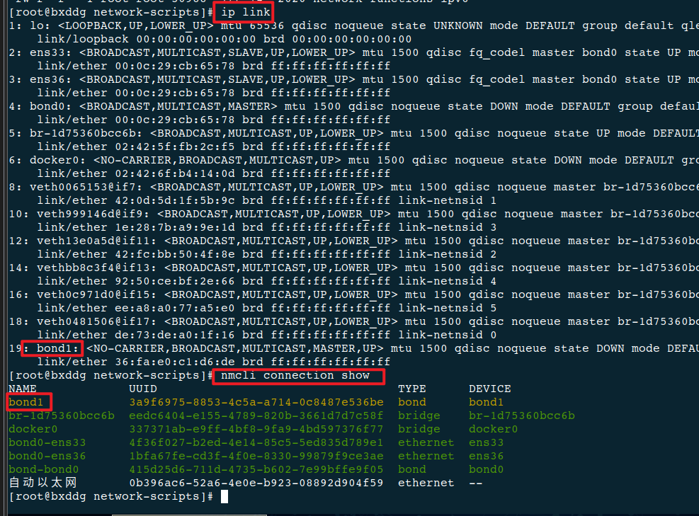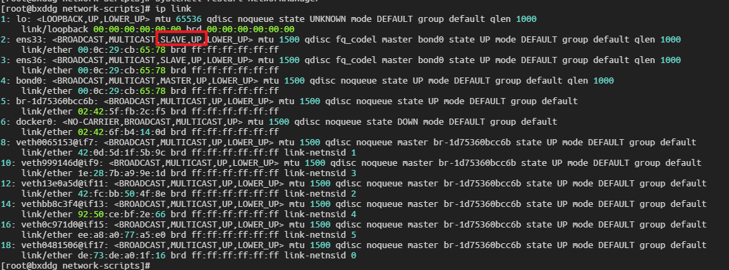 bond2已正常建立ens33和ens36已加入 Bond