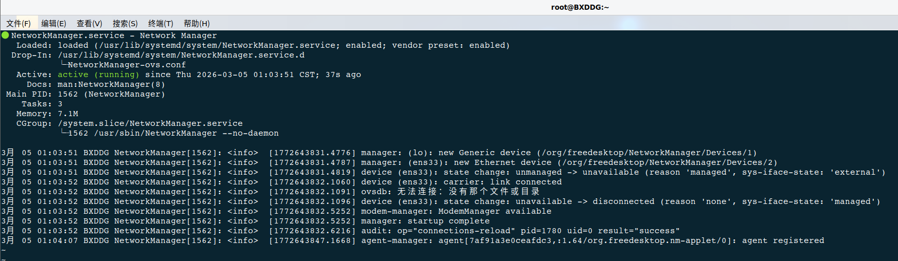 NetworkManager.service查看状态: