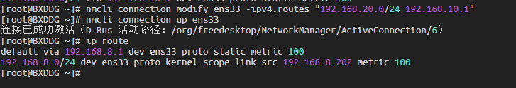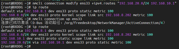 ip route add 192.168.20.0/24 via 192.168.10.1 dev ens33临时删除路由: