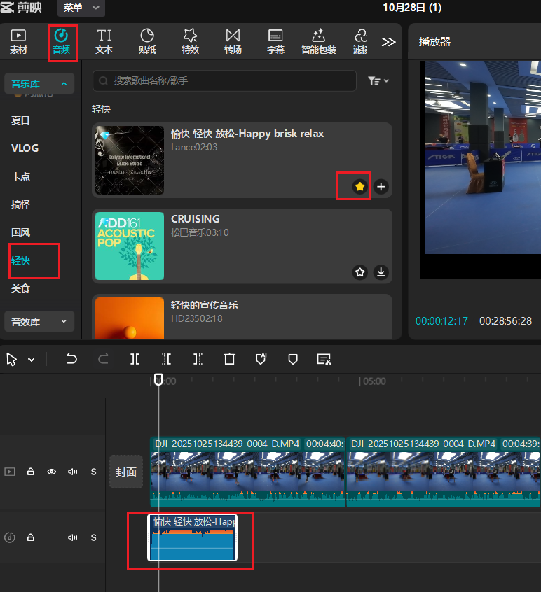 4️⃣ 选中音效后,点击“+”**添加至时间轴。