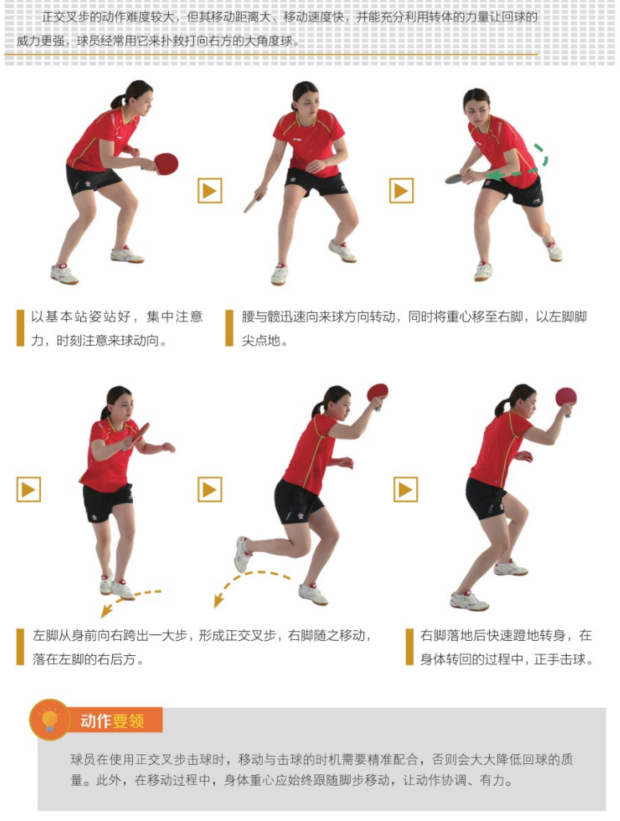 → 正交叉步能拉开身体空间,保证大幅度攻球。
