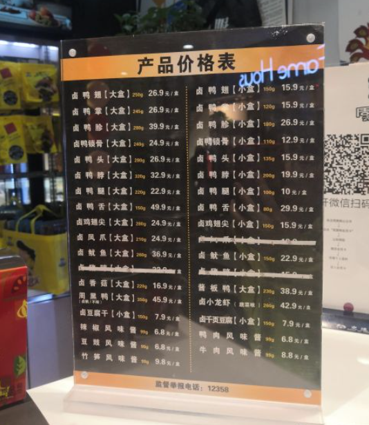 “鸭”:主营鸭脖、鸭锁骨、鸭掌、鸭翅等卤味。