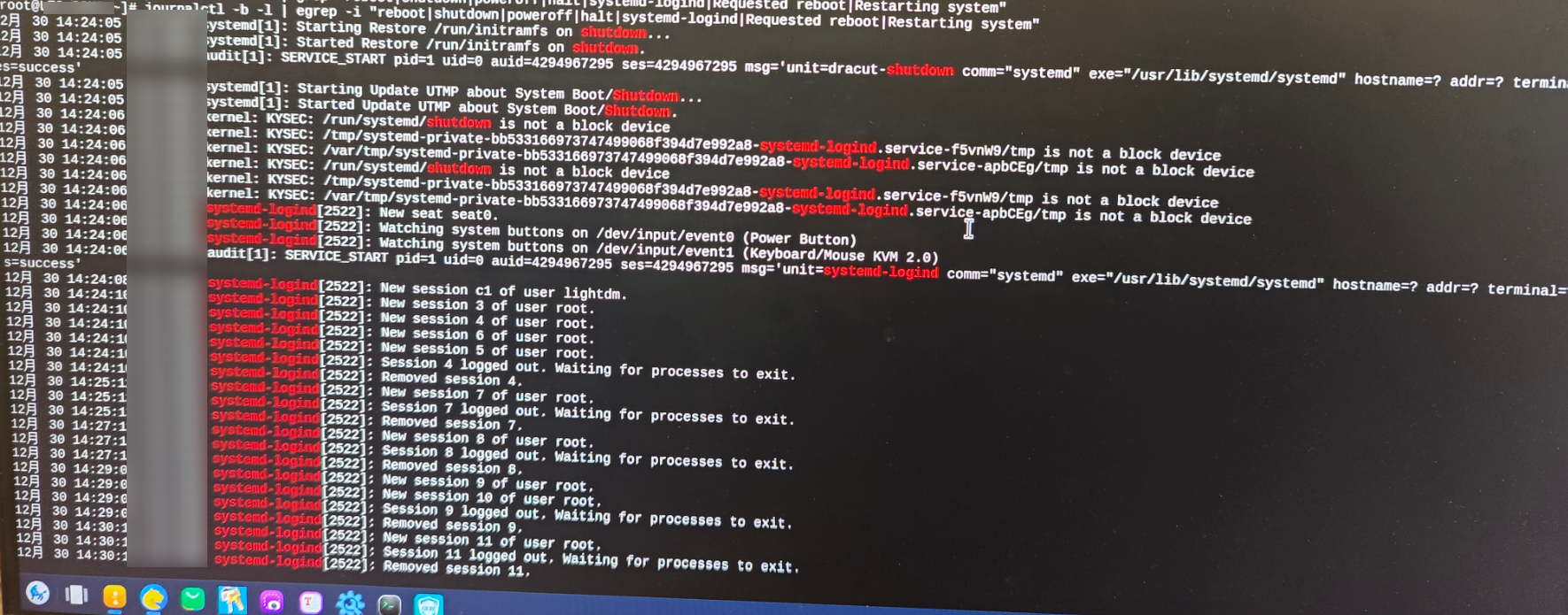 sudo: user : COMMAND=/sbin/rebootsystemd-logind: Power key pressed(少见)systemd: Rebooting.