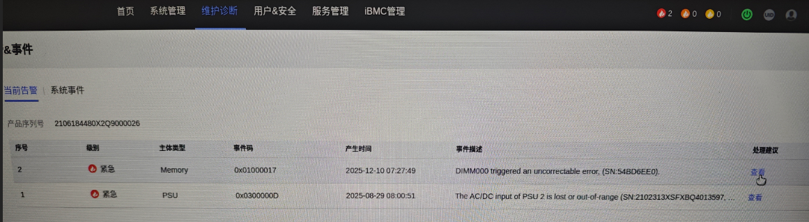 给出的处理建议是关机替换内存然后检查告警。