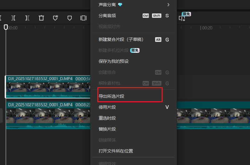 有时候,一个长视频中有多处你想保留的内容(例如多次采访或不同机位),可以用: